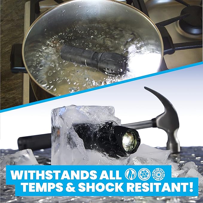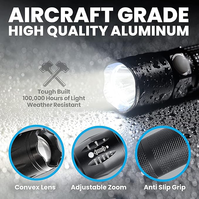 Construida para acompañarte bajo cualquier condición, esta linterna es totalmente resistente al agua, ideal para acampar bajo la lluvia, explorar ríos o realizar senderismo en entornos húmedos.