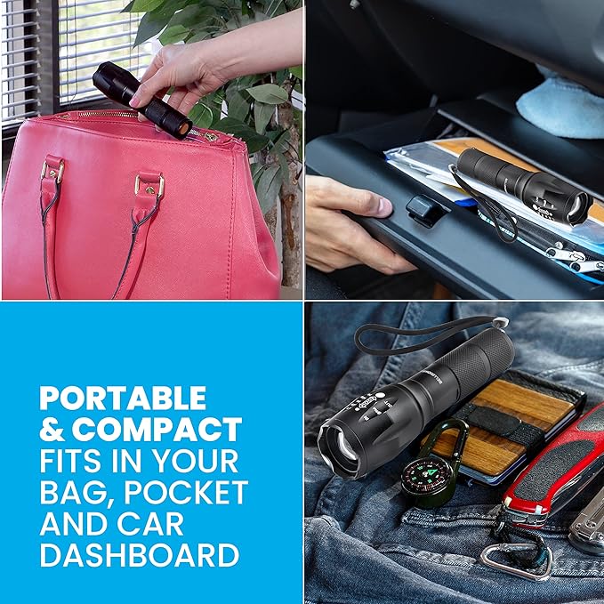 Disfruta de un rendimiento excepcional con nuestra linterna LED táctica, diseñada para ofrecer potencia, resistencia y versatilidad en cualquier situación, ya sea en actividades al aire libre, emergencias o uso cotidiano.