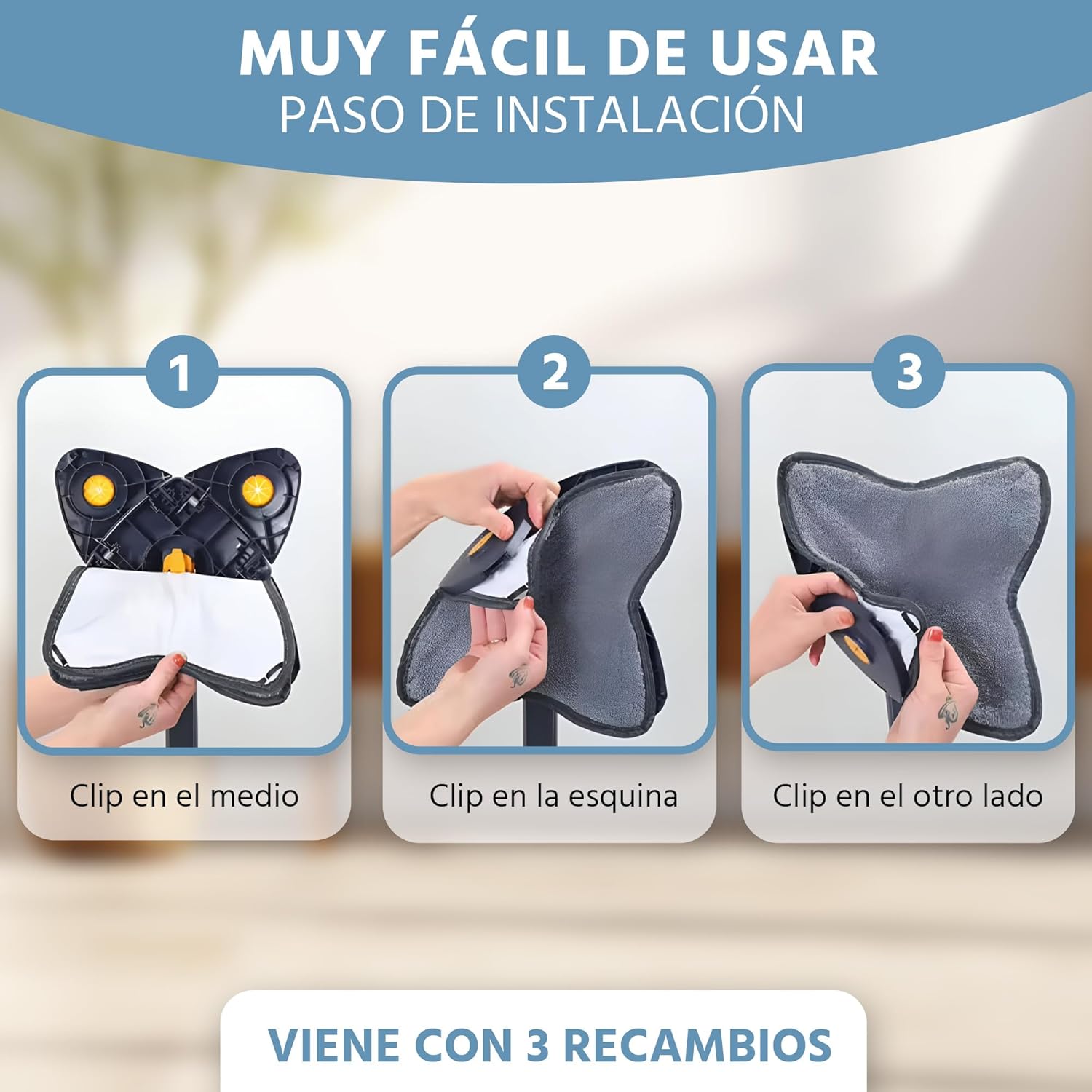 - Tecnología de microfibra de alta absorción – Incluye 3 paños de microfibra premium que capturan eficazmente el polvo, la suciedad y los líquidos, dejando las superficies limpias, secas y sin rayas en menos tiempo.