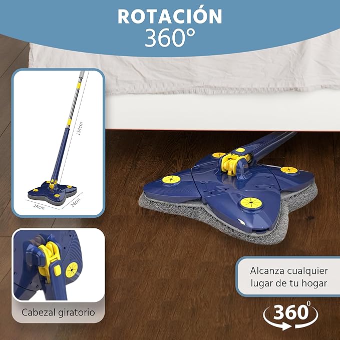 - Sistema autoescurrible avanzado – Mantén tus manos limpias gracias a su sistema automático que escurre el exceso de agua sin necesidad de tocarlas. El paño queda ligeramente húmedo y listo para seguir limpiando, ofreciendo una experiencia más higiénica y práctica.